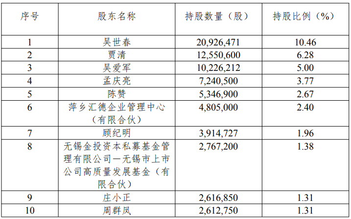 截至目前,吴世春目前持有公司10.46%的股份,成为第一大股东。